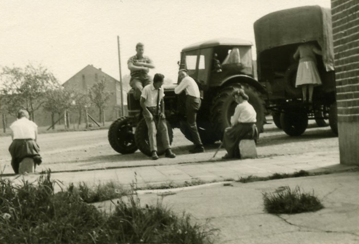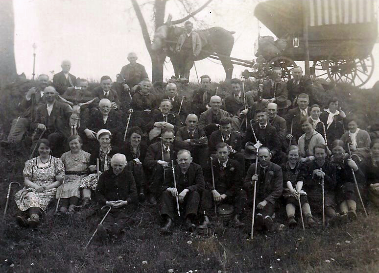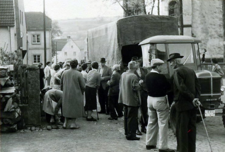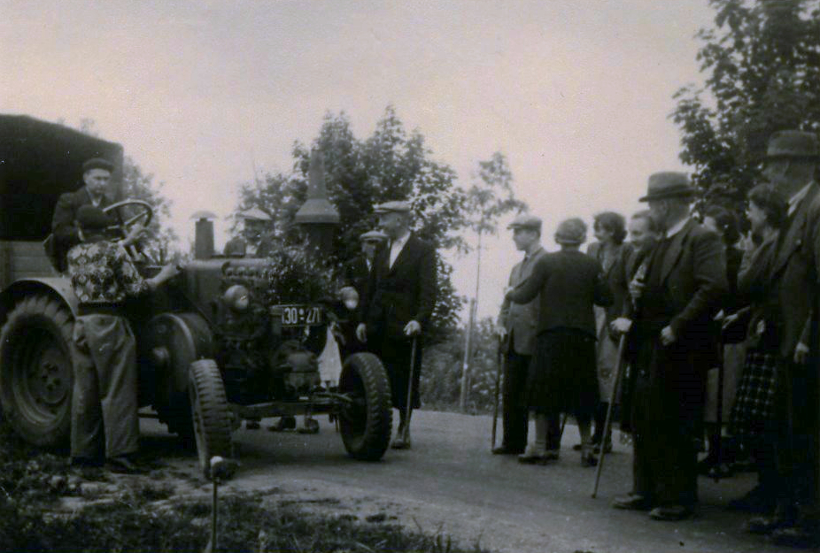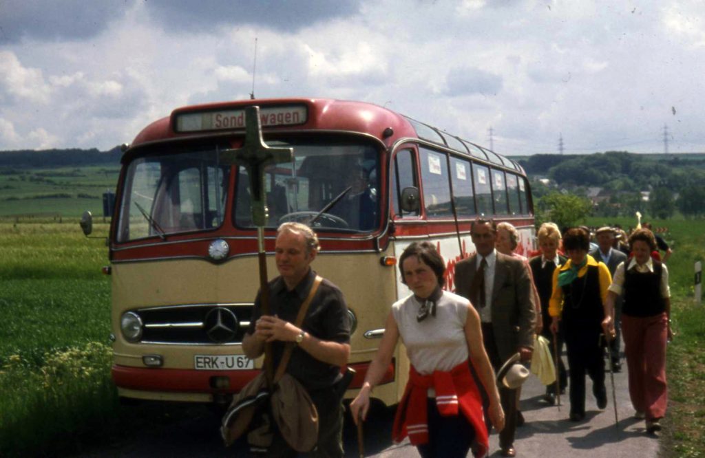 „Am 15. Mai 1953 begaben sich 16 Pilger, die sich aus den Bruderschaften des Kreises Erkelenz zusammengefunden hatten, auf die Fußwallfahrt nach Trier. Um 4.00 Uhr wohnten wir in der Lambertuskirche dem heiligen Meßopfer bei und empfingen die hl. Kommunion. Der Abmarsch war um 5.00 Uhr. Ziel des 7. Tages war Soller, das wir über Jülich-Düren um 17.30 Uhr erreichten. Wir hatten schon manchen müden Pilger unter uns, besonders unter den Neulingen, für die eben alles noch neu war, die zwar mit gutem Mut begonnen hatten, sich aber keine Vorstellung machen konnten von dem Pensum, das jeden Tag zu leisten ist. Dort tröstet sich einer an dem anderen und die mehrjährigen Pilger versichern, dass es morgen besser geht. So ist es auch.