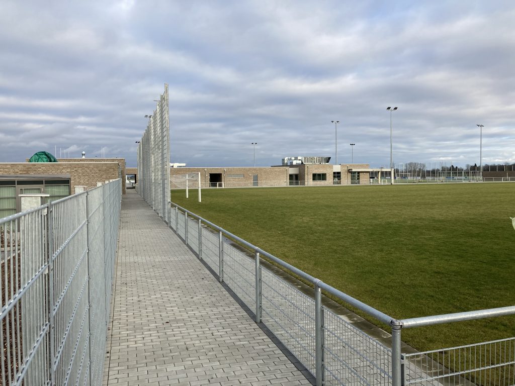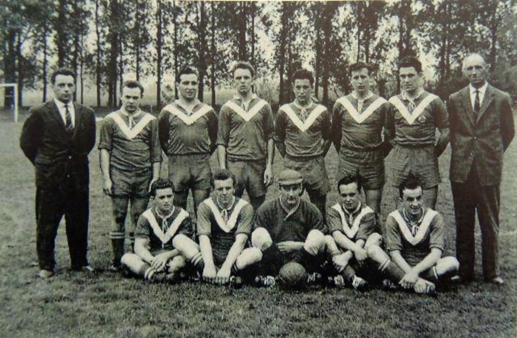 Der Sportplatz lag seit jeher in den feuchten Niederungen des Niersquellengebiet. Er zeigte sich stets als nasse Wiese und war nur schwer bespielbar. Im Jahr 1959 wollte der Verein den Platz durch Eigenleistung trocken legen. Dazu sollten sich alle Mitglieder an den Arbeiten beteiligen. Die Annalen berichten, dass 250 m Entwässerungsgräben ausgehoben wurden, die Arbeiten aber ins Stocken gerieten, weil in der 2. Woche bereits der Arbeitseifer nachließ.7 Dennoch gelang es, den Platz einigermaßen trocken zu legen und wiederherzustellen.