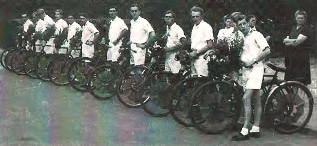 Am 21. August 1948 wurde der Verein wieder ins Leben gerufen. Ein Jahr später veranstaltete er das erste große Radsportfest nach dem Zweiten Weltkrieg. Aus dem Erlös des Festes kaufte man alte Kunsträder.3 Damit konnte man die Tradition des Kunstradfahrens auch in schlechten Zeiten wieder aufleben lassen. Der Verein trat 1951 dem Bund Deutscher Radfahrer bei. In der Folgezeit nahm er erfolgreich an Bezirksmeisterschaften teil. Leider durchlebte der Verein Anfang der 1960er Jahre wieder ein Krise, so dass der Sportbetrieb 1962 eingestellt werden musste.4