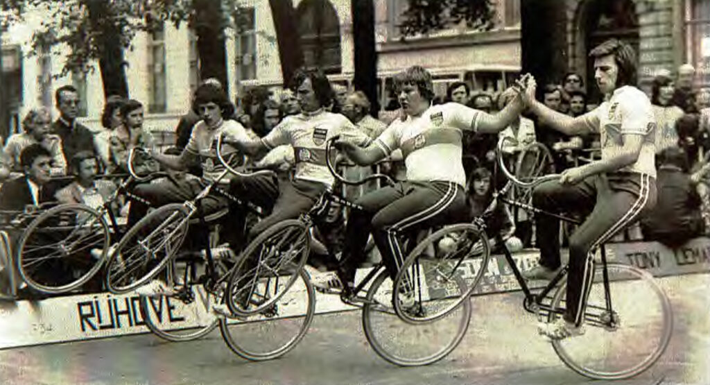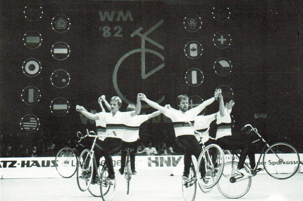 Im gleichen Jahr belegten auch die Schülerinnen Ursula Thomas, Monika Pangels, Angelika Herrmanns, Sibille Schoesser, Brigitte Diek und Silvia Dreßen im 6er Kunstfahren den 1. Platz bei den deutschen Meisterschaften. Bis zum Jahre 1989 errangen 4er und 6er Kunstfahrgruppen unterschiedlicher Klassen insgesamt 26 deutsche Meisterschaften. Maßgeblich beteiligt an diesen Erfolgen war die 4er Männermannschaft in der Besetzung Rainer und Bernd Winkels, Bernd Franken und Karl-Heinz Laufs, die durch Carsten Proebster und Friedbert Laufs in der 6er Mannschaft ergänzt wurden. „Ein Höhepunkt in der Vereinsgeschichte war das Schaulaufen des amtierenden „Deutschen Meisters“ 1982 im Sechser-Kunstradfahren der Männer auf der Welt- und Europameisterschaft in Wiesbaden.“7