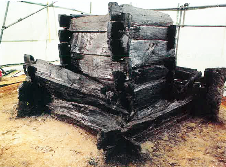 Die dendrochronologischen Untersuchungen5 ergaben zunächst für die drei Brunnenkästen unterschiedliche Entstehungszeiten. Der äußere Kasten entstand 5090 v. Chr., der mittlere 5067 +/- 5 Jahre v. Chr. und der kleine 5050 v. Chr.6 Damit stand fest, dass die drei Brunnenkästen eigenständige Bauten waren. Spätere Untersuchungen zeigten jedoch, dass die Bohlen des mittleren und kleinen Brunnenkastens aus der gleichen Zeit, nämlich 5057 +/- 5 Jahre v. Chr., stammen. Dies hatte Folgen für die Deutung der Baugeschichte des Brunnens.