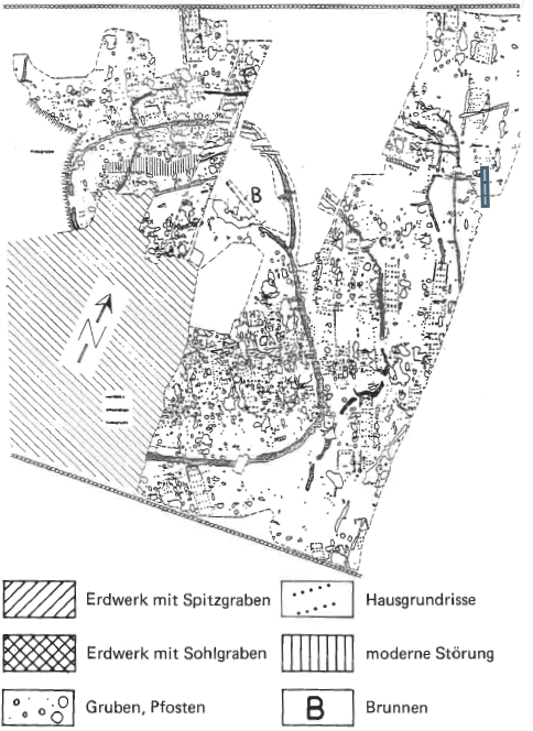 Bereits im Jahre 1965 entdeckten Grabungstechniker des Rheinischen Landesmuseums Bonn/Rheinischen Amts für Bodendenkmalpflege in der Gegend östlich von Erkelenz-Kückhoven eine Siedlungsstelle der Jüngeren Rheinischen Bandkeramiker. (Jungsteinzeit). Als im Jahre 1989 die Kiesgrube GRUBA in diesem Fundgebiet eröffnet werden sollte, wurden im Vorfeld genaue archäologische Untersuchungen durchgeführt, die vielfältige Belege für die Besiedlung zu Tage förderten. Aus den Funden konnte das archäologische Team schließen, dass diese Ansiedlung groß gewesen sein musste. Mindestens 65 Hausgrundrisse wurden freigelegt. Die nebenstehende Skizze zeigt die Ergebnisse der Grabungen.