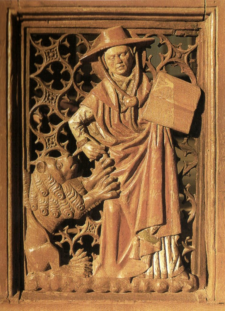 Die Gasthauskapelle trug das Patrozinium des Heiligen Leonhard. Dieser lebte am Nordwestrand des französischen Zentralmassivs und wird in Saint-Leonard-de-Noblat verehrt. Dieser Ort liegt am Jakobsweg nach Santiago de Compostela. Und so liegt es nahe, dass Pilger vom Niederrhein im 15. Jahrhundert eine Reliquie von dort nach Erkelenz gebracht haben.