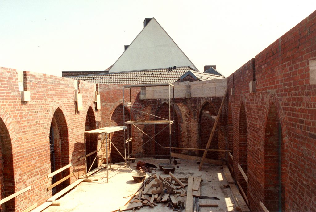 Der Kapellenboden war aufgefüllt mit den Trümmern eines gotischen Kreuzrippengewölbes, das beim Umbau 1827 zerstört wurde. Aus dem vorgefundenen Material konnte dies ermittelt werden. Im Chorbereich wurden neun Blendarkaden mit Rundbögen entdeckt, die zum Teil jetzt wieder sichtbar sind. Die beiden Seitenwände waren bis 1827 durch je fünf und die Chorhauptwand durch zwei aus Ziegelsteinen gemauerte Stützpfeiler gegliedert. Zwischen diesen befanden sich elf gotische Spitzbogenfenster. Die Stützpfeiler wurden bei der Sanierung 1989/1990 nicht wiederhergestellt.12