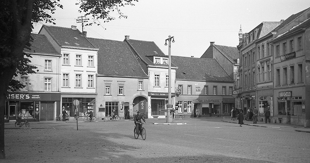 Die Ostseite mit der Löwen-Apotheke, Otto Mess und Kaisers Kaffee