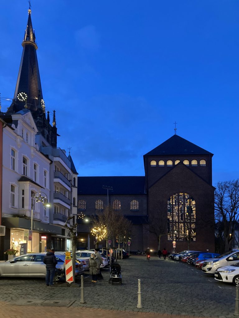 Der Markt wird beherrscht von der Pfarrkirche Sankt Lambertus an der Nordseite. Im 9. Jahrhundert wird die erste Kirche erwähnt, es folgen weitere. Die gotische Kirche wurde ab 1418 gebaut, der Turm ab 1458. Nach der Zerstörung im Zweiten Weltkrieg wurden Chor und Schiff ab 1947 neu gebaut, der Turm wurde wiederherstellt.