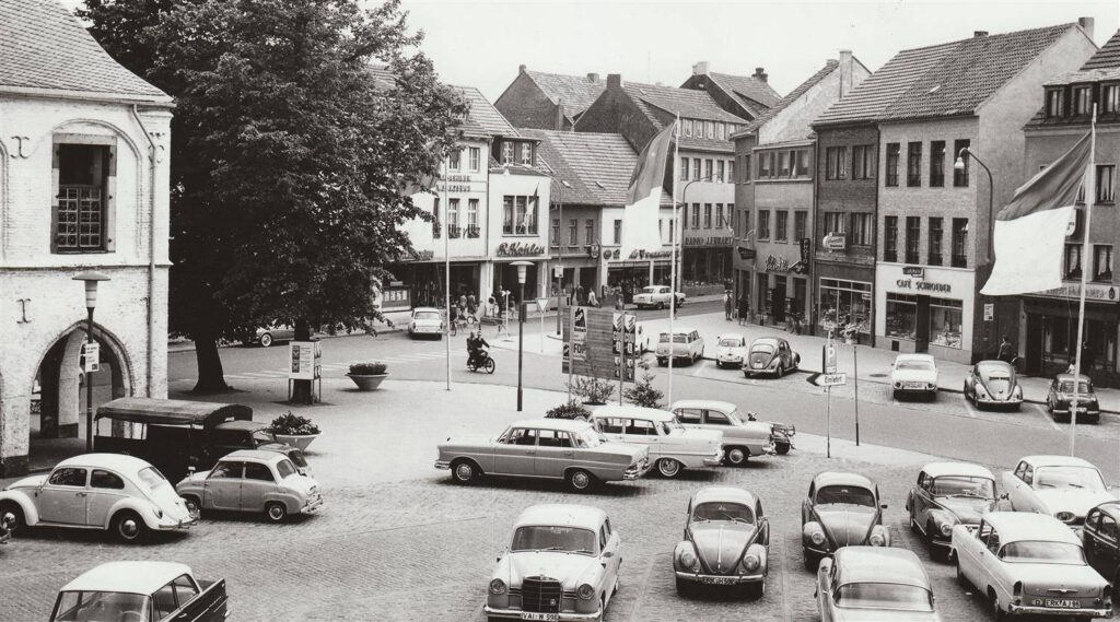 Der Markt war immer Mittelpunkt der Stadt und hatte vielerlei Funktionen, wie Markttreiben, Feste, Kirmes oder Veranstaltungen. Immer umstritten war seine Funktion als Parkplatz. Fotos aus den 1930iger Jahren zeigen schon Autos auf dem Markt. Selbst kurz nach dem 2. Weltkrieg parken hier schon Fahrzeuge. Mehrfach wurden Konzept und Nutzung für Autos geändert und immer wurden heftige Diskussionen über Für und Wider geführt.