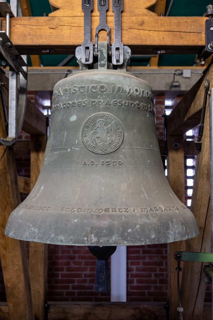 Neben dem Glockendreiklang, der das Tedeum-Motiv läutet, ruft eine Sterbeglocke aus dem Jahre 1583 die Gläubigen zum Totengebet und Versehgang.