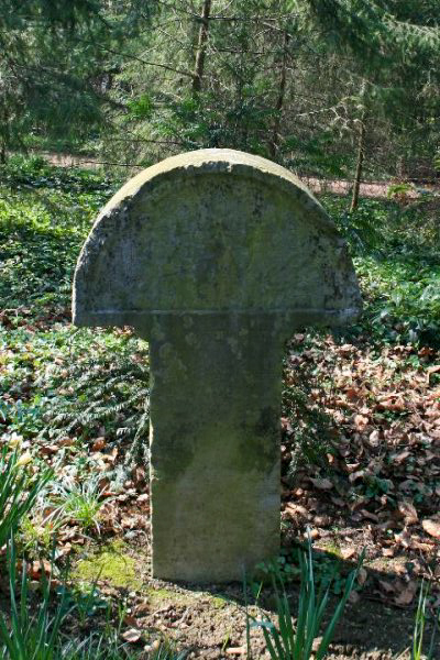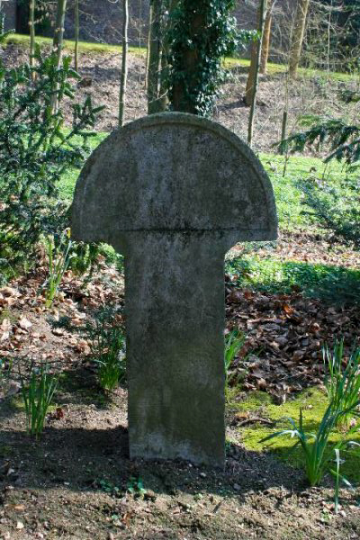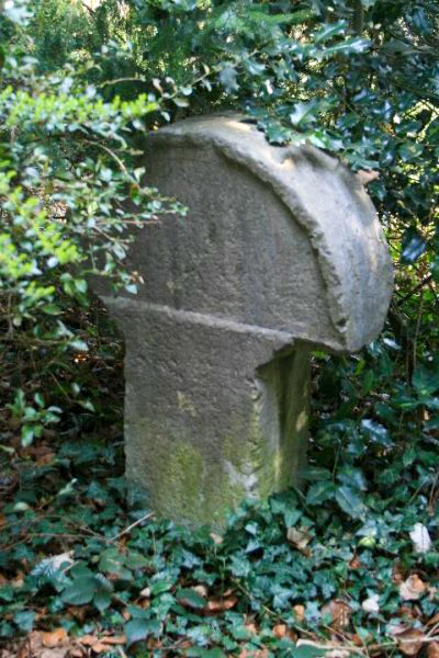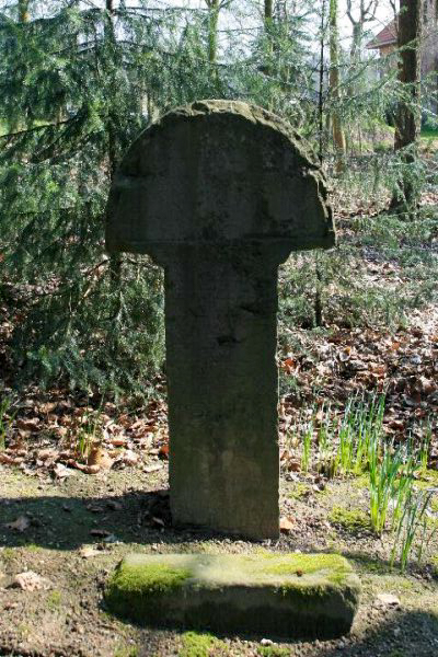 Das Relief des Oberteils lässt sich nicht mehr erkennen. Im Sockel stehen 2 Textzeilen, wovon man nur noch das Wort „JESVS” lesen kann. Die 3. Zeile besteht aus der Jahresziffer „1777“.