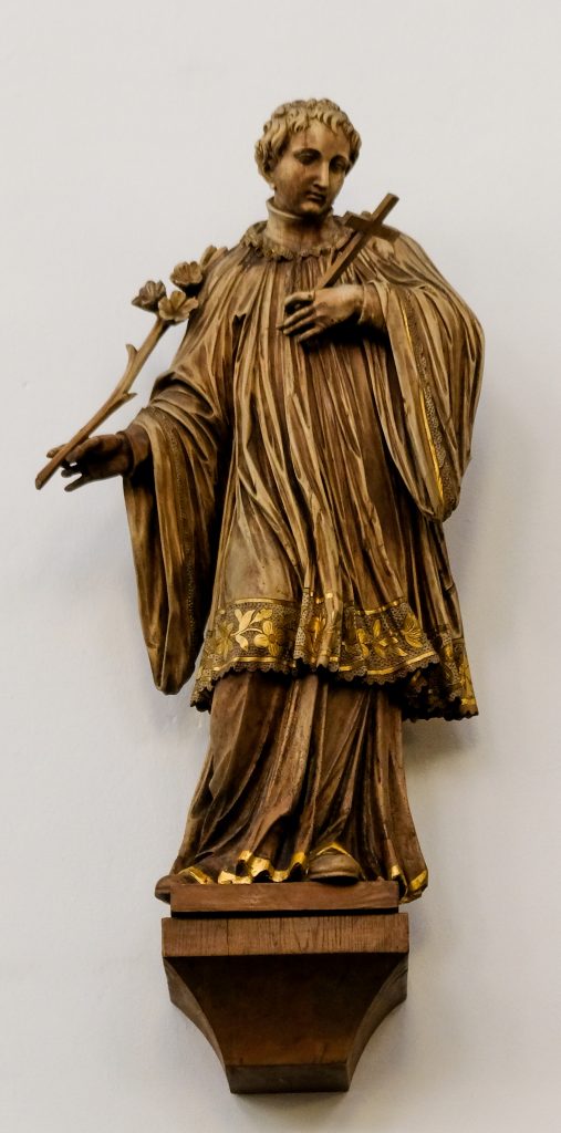 An der 2. Säule hängen sich die Heiligen Aloisius von Gonzaga (Nordwand) und Stanislaus Kostka (Südwand, im Heft „Pfarrkirche und Gemeinde St. Lambertus“ wird er als Antonius von Padua bezeichnet) gegenüber. Diese ebenfalls 95 cm großen Holzfiguren entstanden in der Mitte des 18. Jahrhunderts. Aloisius trägt eine Lilie als Zeichen seiner reinen Seele in der rechten Hand, ein Kreuz in seiner linken. Stanislaus trägt ein fröhlich strampelndes Christuskind auf seinem rechten Arm. Vermutlich hat Pfarrer Anton Evertz die Figuren nach dem Erwerb von Reliquien beider Heiliger im Jahre 1806 als Säkularisationsgut erworben. Sie standen ursprünglich zu Seiten des Hochaltars, wurden 1930 in die Antoniuskirche gestellt und kamen dann nach dem Wiederaufbau wieder in die Pfarrkirche.23