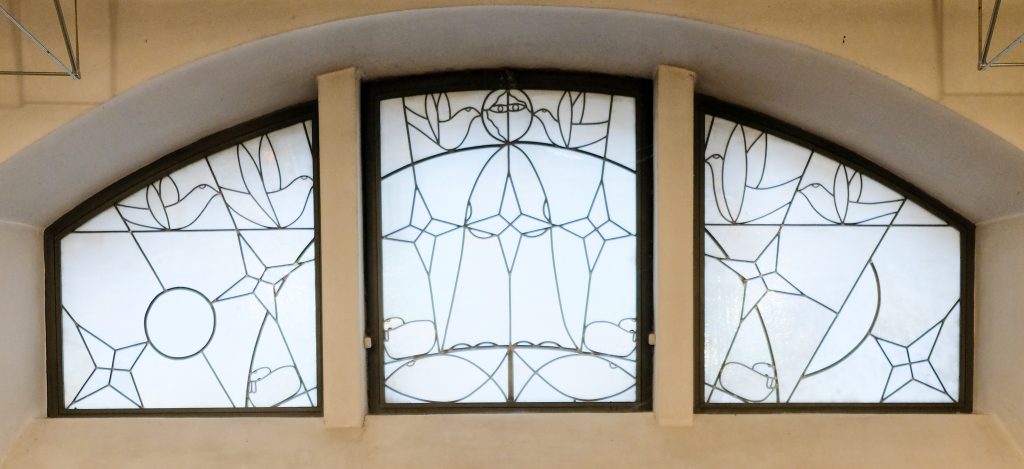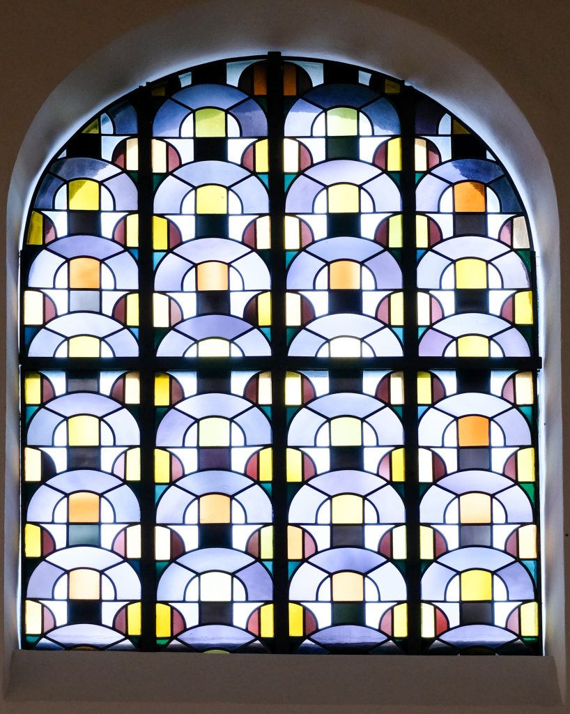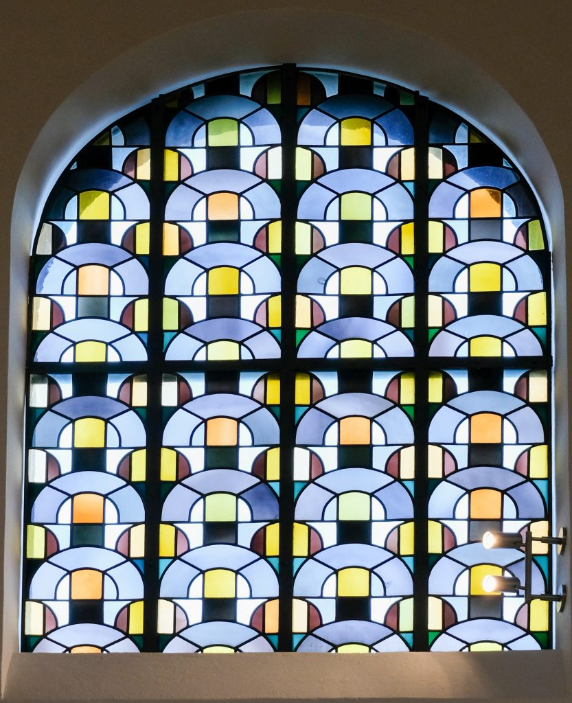 In den Obergaden befinden sich auf jeder Seitenwandseite 6 Ornamentfenster. Sie sind in hellen Farben gehalten, so dass sie den Kirchenraum erhellen und bei Sonnenschein reizvolle Muster werfen.