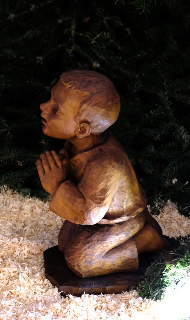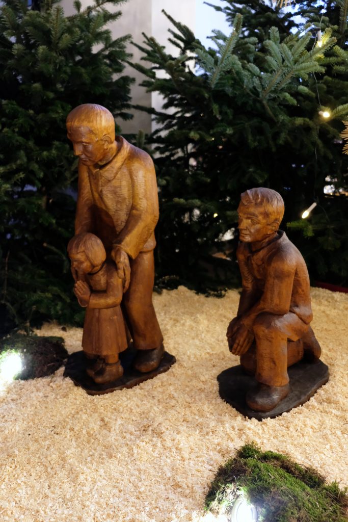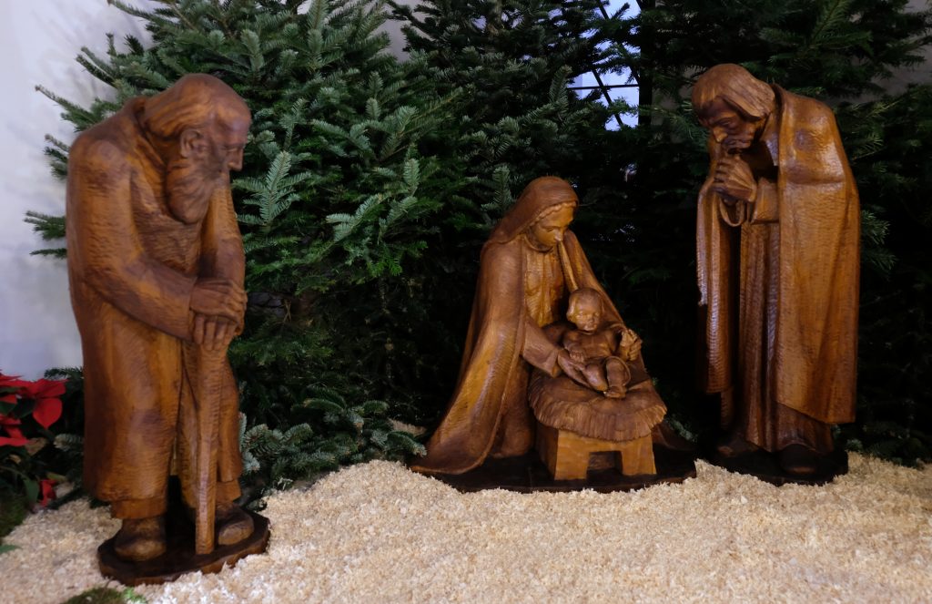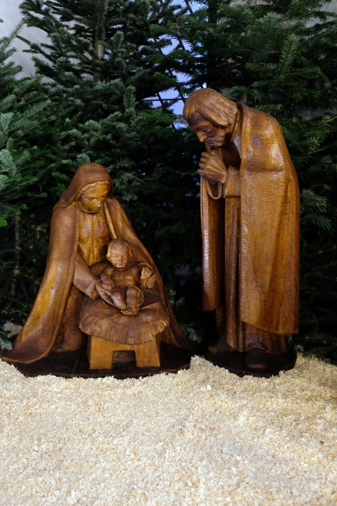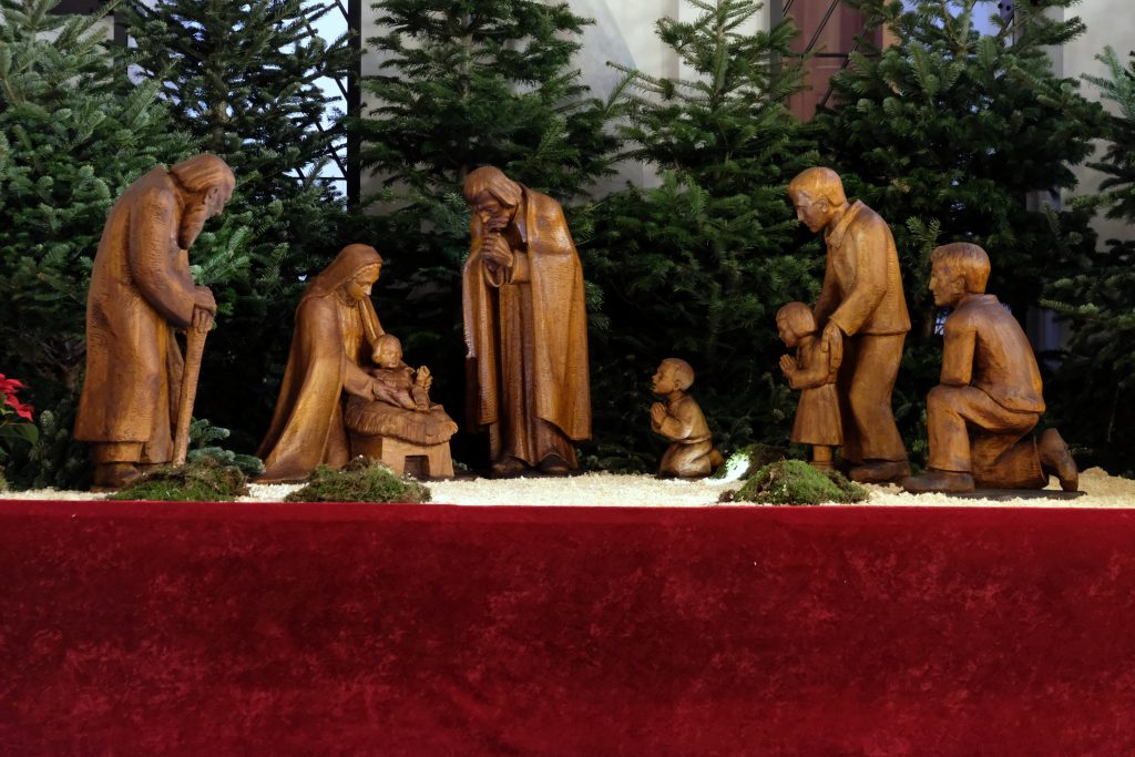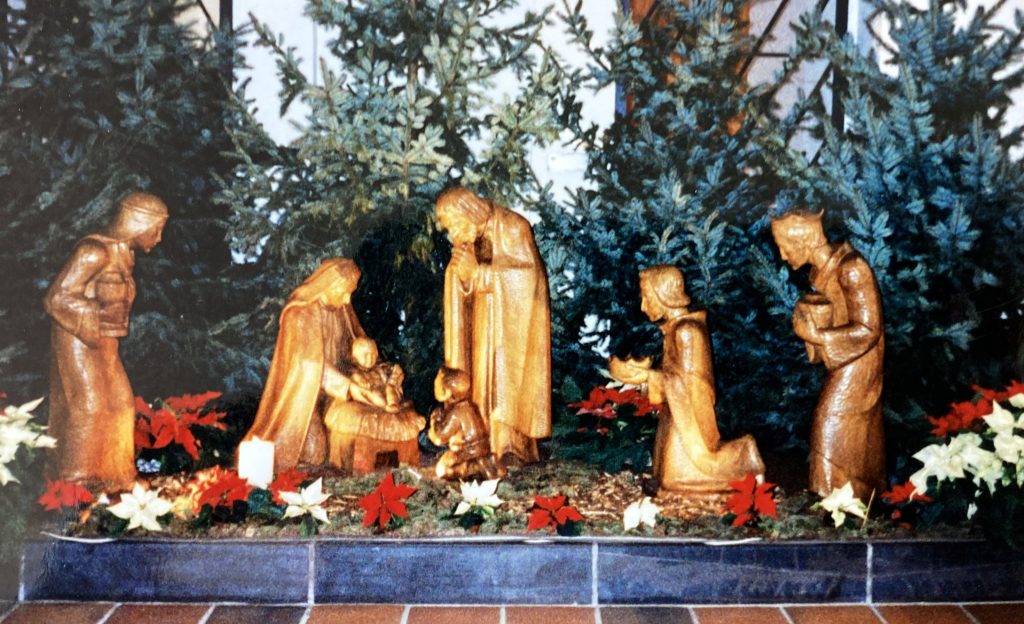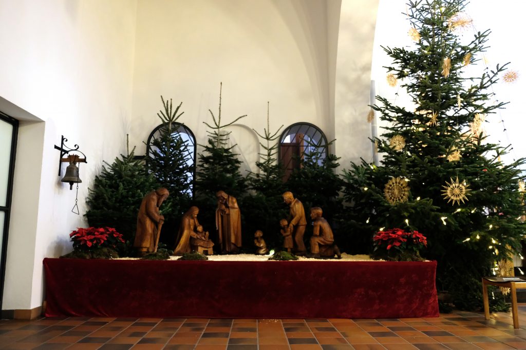 Franz Xaver Haak schuf in den Jahren 1934 bis 1937 eine Altarkrippe aus Holz für die Kirche. Sie besteht aus elf naturholzfarbigen Figuren. Zunächst konnten 1934 Maria, das Kind und ein Hirte im Chorraum aufgestellt werden. Die Figuren waren eine Spende des Erkelenzer Frauen- und Müttervereins. Es folgten 1935 Josef und drei weitere Hirten. 1937 komplettierten die Heiligen Drei Könige die Figurengruppe.29 Haak hatte die Figuren vorwiegend aus Lindenholz geschnitzt, verwendete aber auch, wahrscheinlich in Ermangelung von Holz, andere Holzarten. Alle Figuren haben einen eigenen Gesichtsausdruck.30 Neben den Hirten beten auch Kinder den Sohn Gottes an.