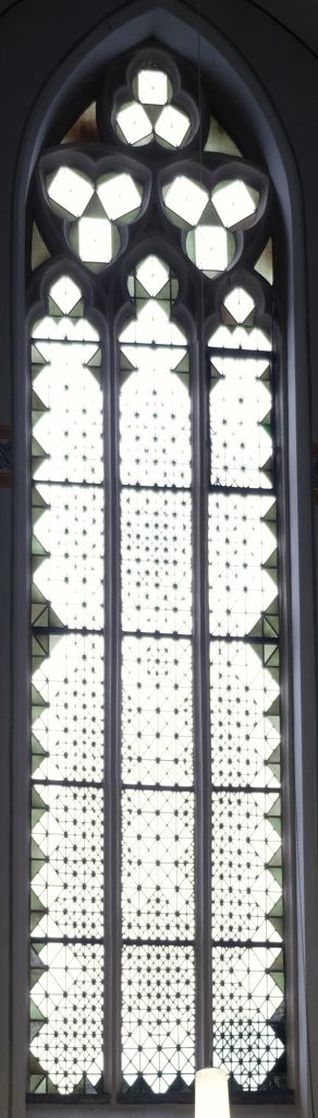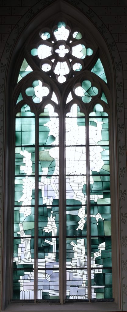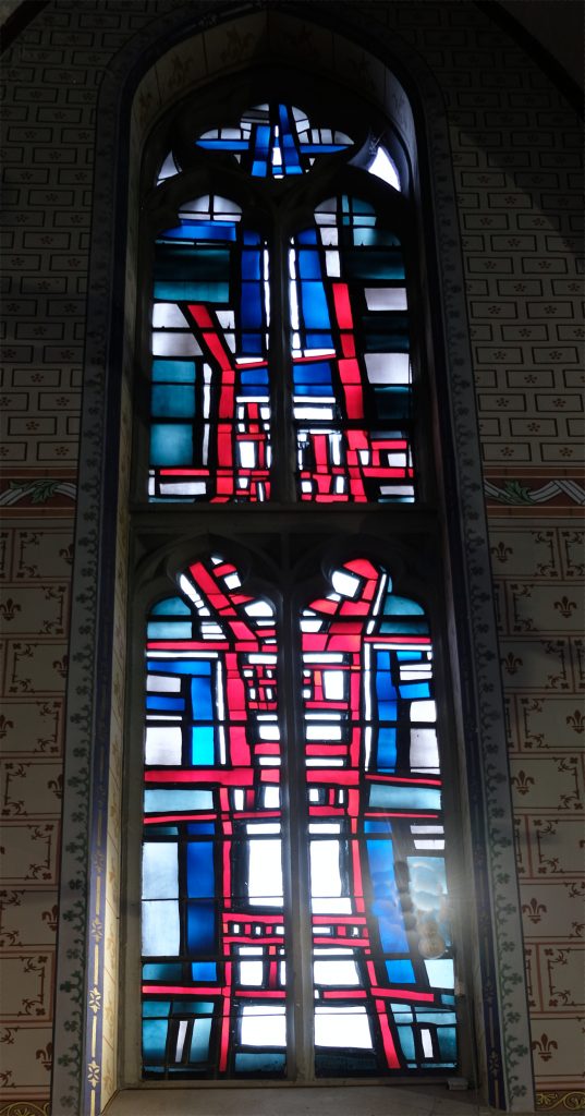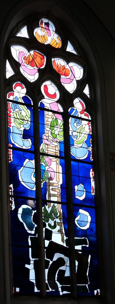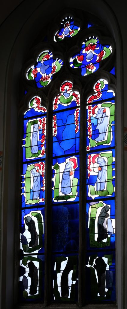 Die Seitenkapellen werden durch je 2 kleinere Fenster belichtet. Sie wurden 1957 und 1958 geschaffen.
