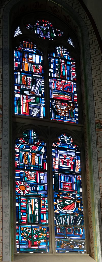 Alle Fenster in der Kirche wurden von Wilhelm Buschulte im Zeitraum von 1956 bis 1990 entworfen und errichtet.