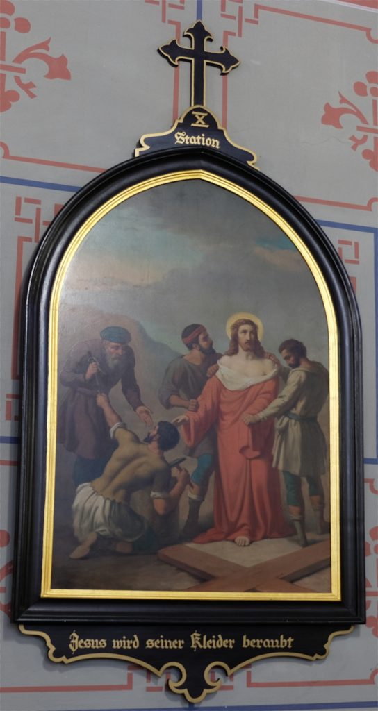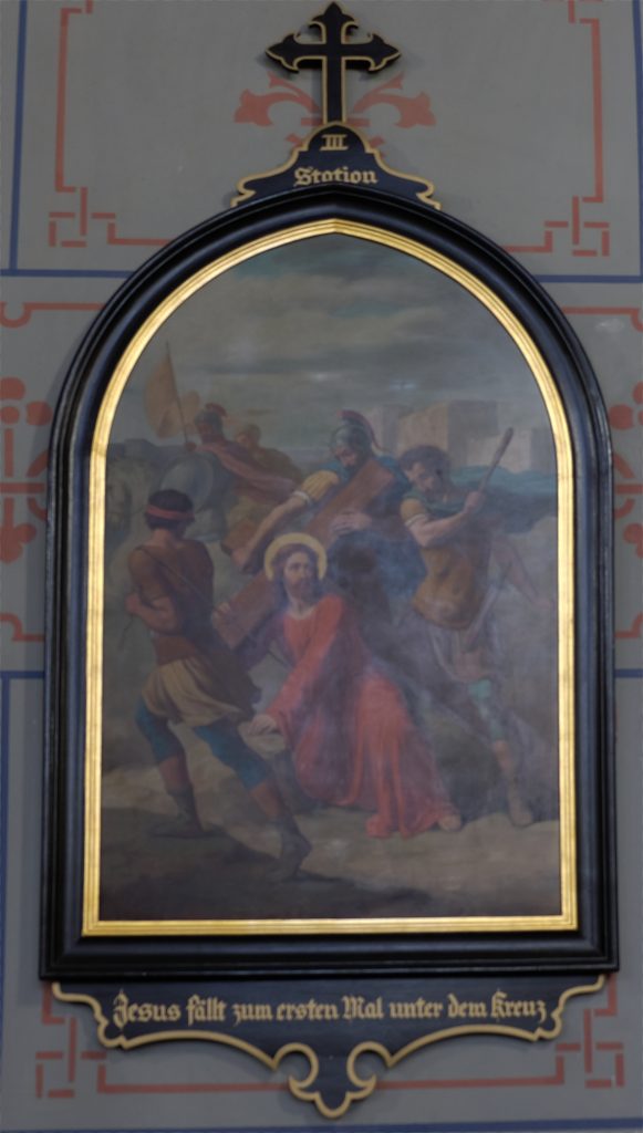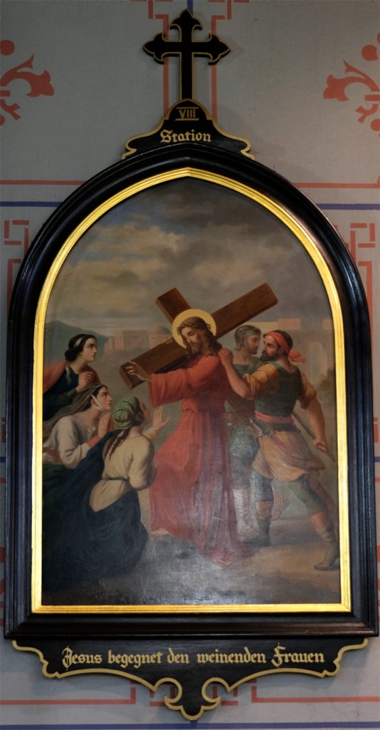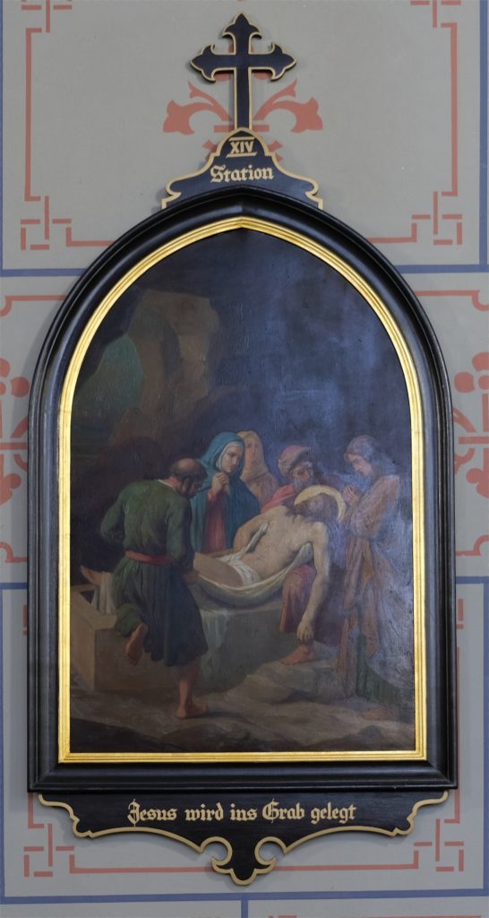 Im hinteren Teil der Nordwand hängt das Ölgemälde „Christus und die reuigen Sünder„. Es stammt aus der 1. Hälfte des 17. Jahrhunderts. Der auferstandene Jesus mit dem Kreuz streckt seine Hand fünf Gestalten in reuiger Haltung entgegen.