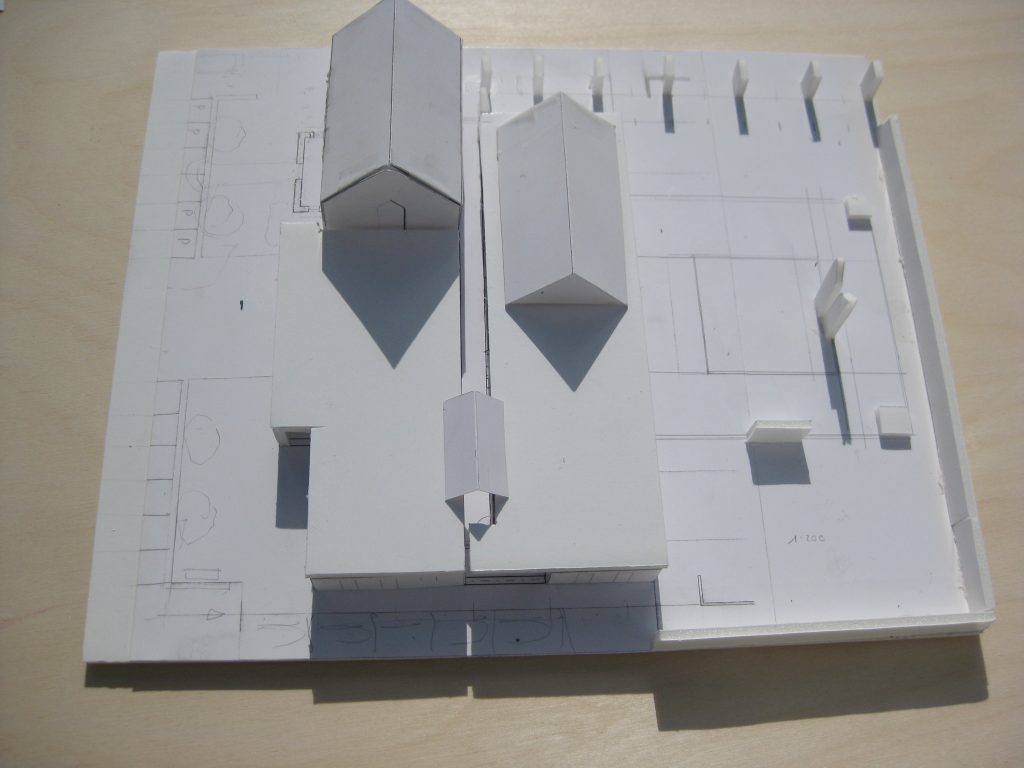 - Kapellentrakt mit Sakralraum, Foyer, Toiletten, zwei Nutzräumen und Turm.