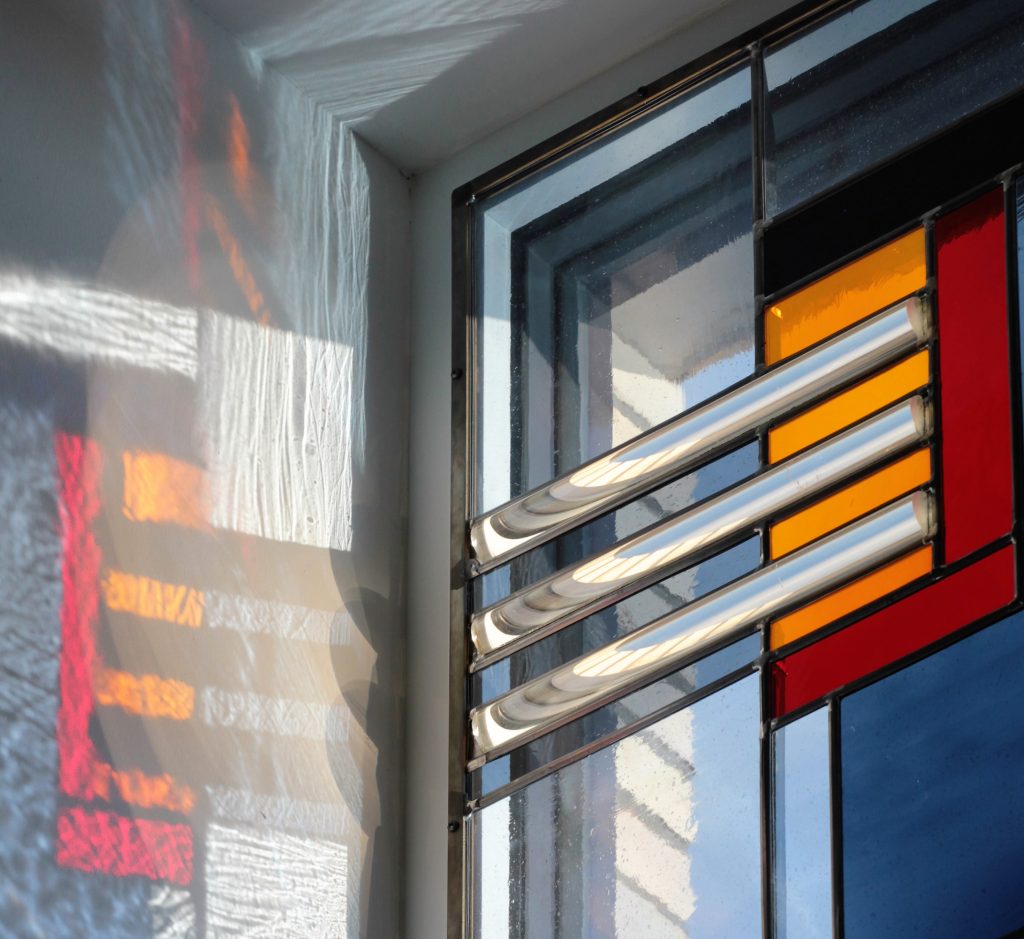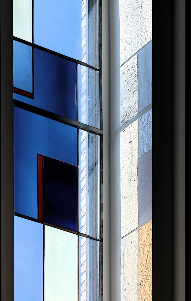 Die Fenster in den Seitenwänden enthalten neben dem Blauton in Richtung Altar zunehmend größer werdende goldene Flächen. Sie tragen dazu bei, „ihn (den Altar, Anmerkung des Verfassers) in seiner Helligkeit aufzuwerten“9. Schmale rote Flächen durchbrechen das dominante Blau und „machen gleichzeitig assoziativ auf die Passion Christi aufmerksam“10. Bei Sonnenschein lassen die Farben der Südseitenfenster den Innenraum in farbigem Licht erstrahlen.