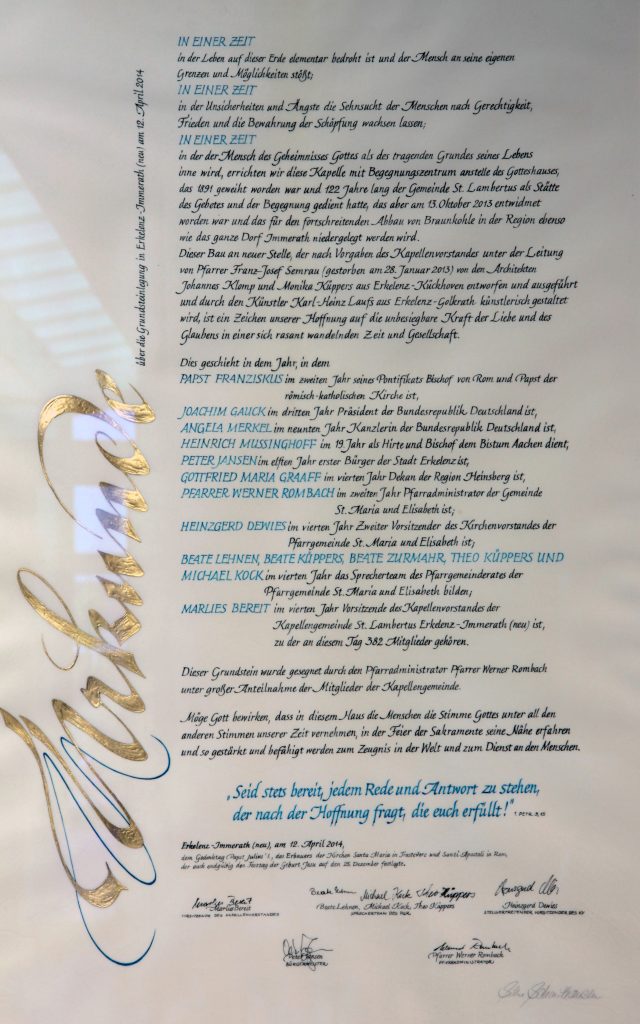 - Der Verkauf der alten Kirche Sankt Lambertus und das Ende der Planung der neuen Kapelle erfolgten etwa zeitgleich.1