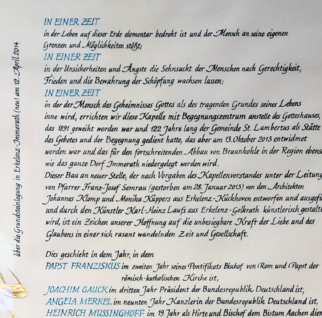 - siehe Karl-Heinz Laufs: Künstlerische Gestaltung der Kapelle. In: St. Lambertus Immerath, a. a. O.
