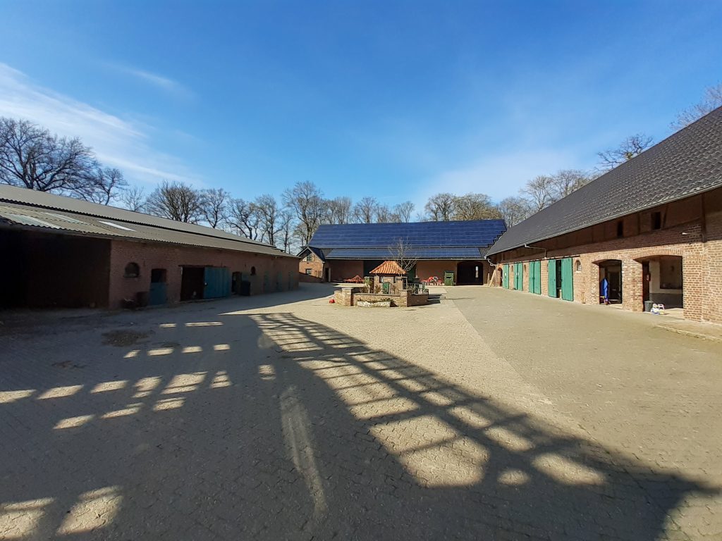 Bis ins 19. Jahrhundert besaß die Hofanlage noch einen Wassergraben. Die Gebäude waren L-förmig angelegt.6 Heute sind die Wassergräben trocken, aber noch zu erkennen. Man betritt den Hof durch einen steinernen Torbogen mit Walmdach aus dem Jahre 1902. Dahinter schließen sich östlich das Herrenhaus aus dem Jahre 1754 und Wirtschaftsgebäude in L-Form an. Auf der Westseite befindet sich ein modernes Scheunengebäude. Außerhalb dieser historischen Anlage liegt heute im Westen noch ein großes Wirtschaftsgebäude, das um die Jahrhundertwende zum 21. Jahrhundert errichtet wurde und landwirtschaftliche Maschinen beherbergt, im Nordosten befinden sich Scheunen.7