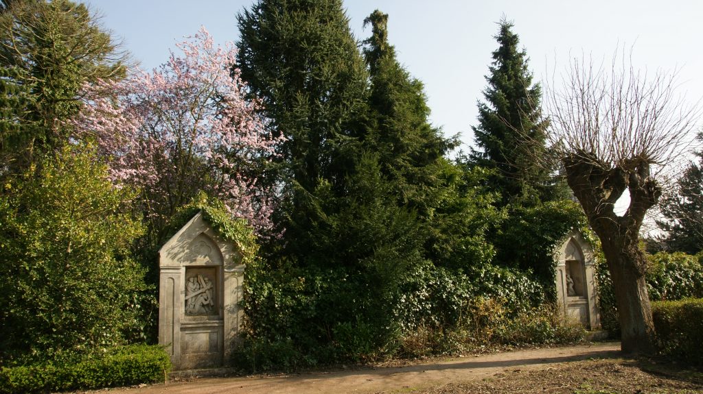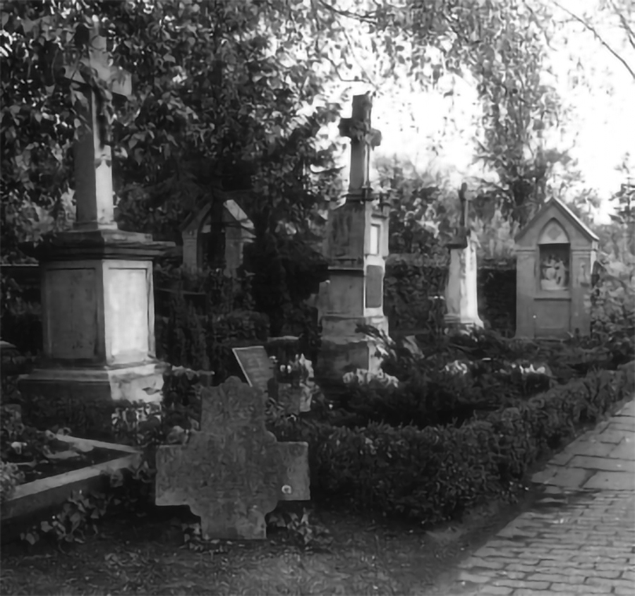 Diese Grabsteine stehen auf dem Boden der alten Kirche und gelten als die bedeutendsten Grabsteine des Friedhofes aus dem 19. Jahrhundert. Sie gehören der neugotischen Epoche an. Auch sie wurden auf den Friedhof des neuen Ortes überführt.