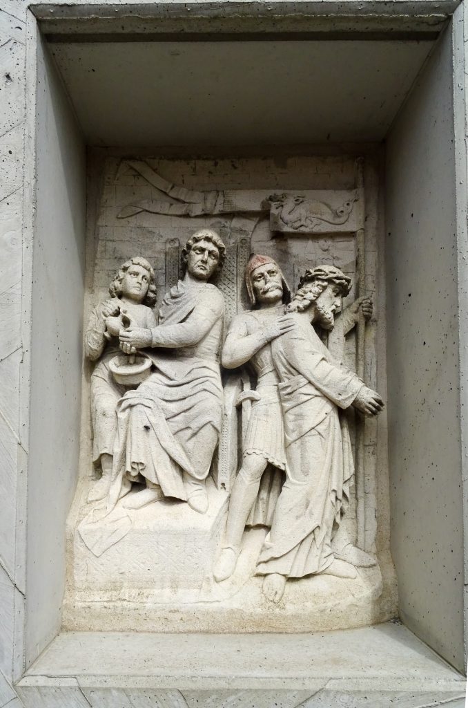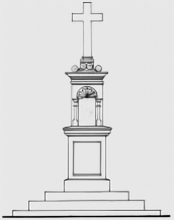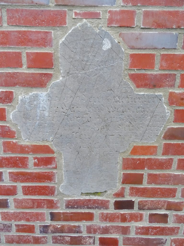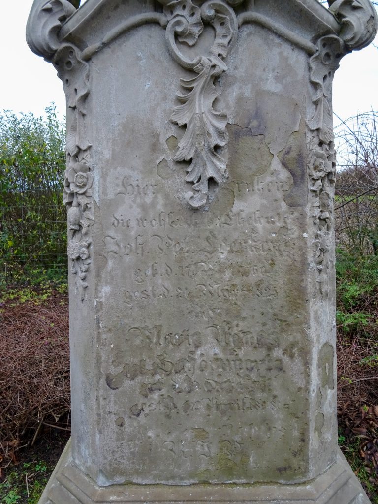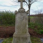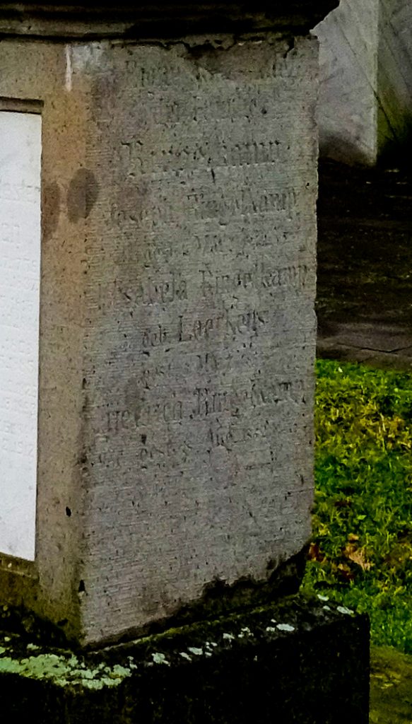 Das Sandsteinkreuz enthält vorne und an der Seite Inschriften:
