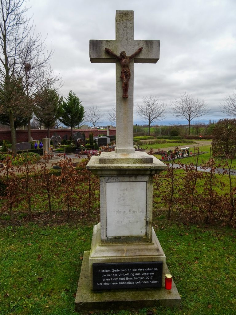 Viele alte Denkmäler aus dem 16. – 18. und dem 19. Jahrhundert blieben auf dem Friedhof erhalten und wurden nach der Umsiedlung auf dem Friedhof im neuen Borschemich wieder aufgebaut. Der neue Friedhof wurde am 05.12.2009 eingesegnet, die ersten Umbettungen erfolgten ein Jahr später. Im Jahre 2016 wurde die Aussegnungshalle errichtet und eingeweiht.