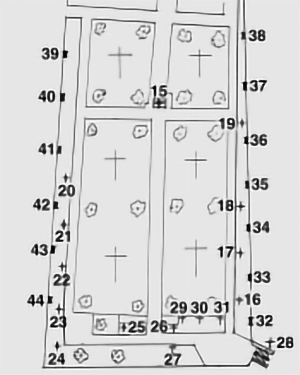 Der Friedhof lag nordöstlich der Kirche Sankt Martinus auf einem leichten Plateau. Der Zugang erfolgte über eine Treppe nördlich der Kirche.