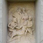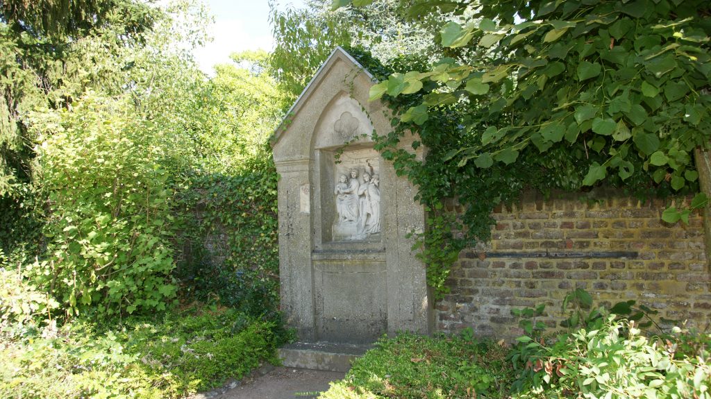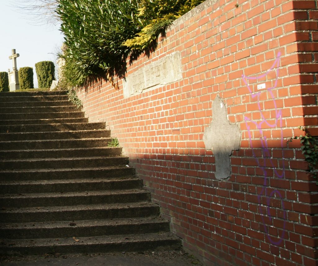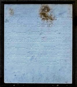 Vorne: Steintafel mit den Namen der Priester aus dem 19. Jahrhundert. Sie wurde 1929 angebracht.