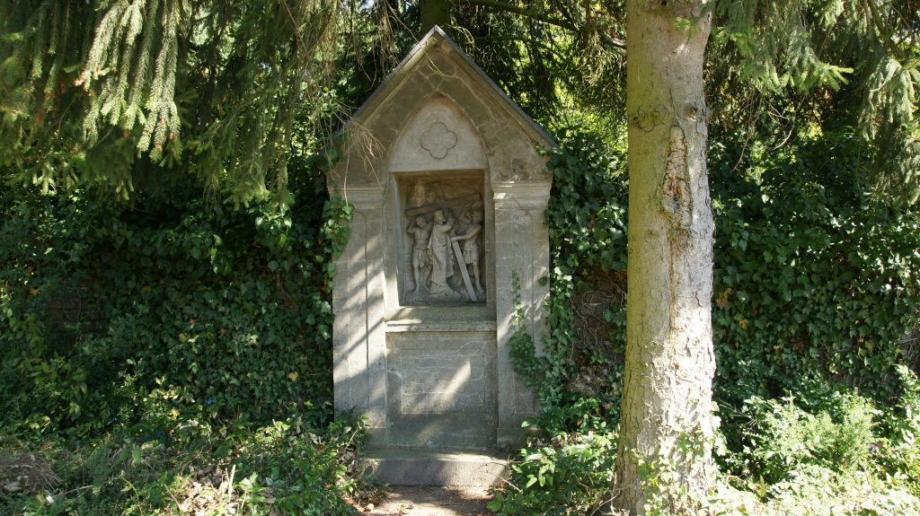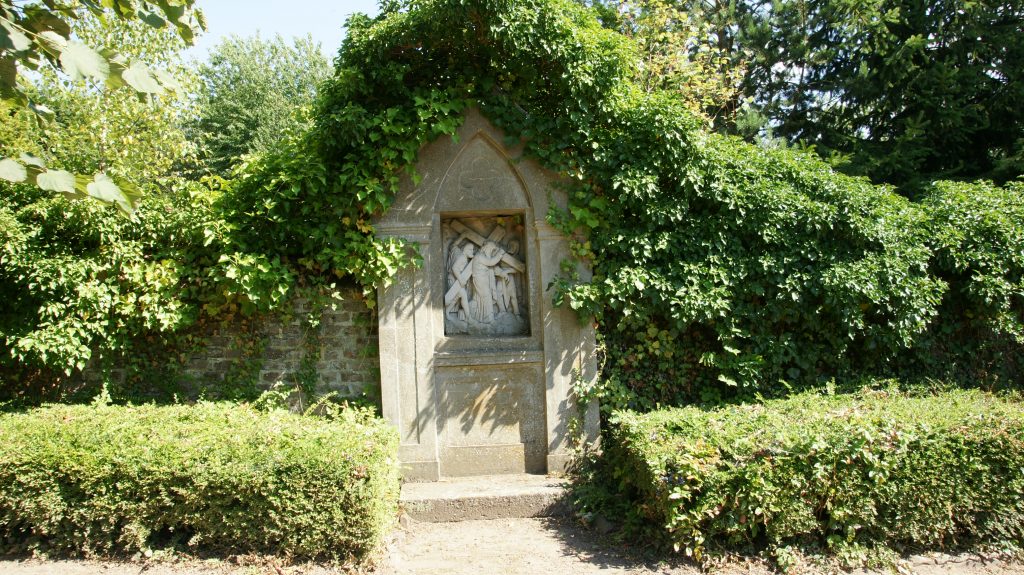 Die Kreuzwegstationen des Borschemicher Friedhofes stammen aus dem Jahre 1850. Sie standen auf dem alten Friedhof an der Umgrenzungsmauer des ursprünglichen Friedhofareals.Von den 14 Stationen existierten noch 13. Die Darstellungen des Leidenswegs Christi befanden sich als Muschelkalkreliefs in den Nischen der gleich aussehenden verputzten Ziegelsteinhäuschen. 1929 und 1990/91 wurden die Kreuzwegstationen renoviert. Ende des 20. Jahrhunderts lebte die Tradition wieder auf, an Karfreitag in einem gemeinsamen Kreuzweggang an den Stationen des Leidenswegs Christi zu gedenken.7