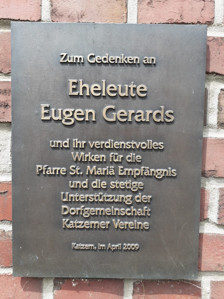 1977 wurde das Wegekreuz von den Besitzern des Hauerhofes, Eugen Gerards und Elisabeth Gerards geb. Hempsch, restauriert. Eugen Gerards war Landtagsabgeordneter, geboren in Oestrich bei Erkelenz. Er hatte den Hof nach dem Zweiten Weltkrieg gekauft. Auf seinen Wunsch hin wurde er auf dem Katzemer Friedhof mit Blick auf den Hauerhof bestattet. Eine Gedenktafel erinnert an die Eheleute Gerards und deren stetige Unterstützung der Dorfgemeinschaft Katzem. Die Tafel befindet sich an dem letzten historischen Tanzsaal. Die Besitzer, der Gaststätte Hecker, verkauften den Tanzsaal an die Stadt Erkelenz. Den Hauerhof erbte Dr. Clemens Hempsch, inzwischen befindet er sich im Eigentum von RWE Power.