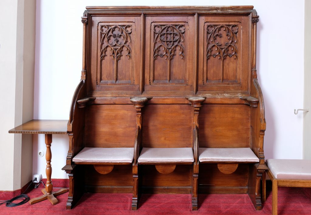 Direkt am Seiteneingang steht ein Kirchenvorsteherstuhl. Er wurde 1909 aus den Resten der Kirchenvorstandsbank, die in diesem Jahr auf 1,95 m gekürzt wurde, gefertigt. Ihre Wangen zeigen die Motive der Kirchenbankwangen aus dieser Zeit.