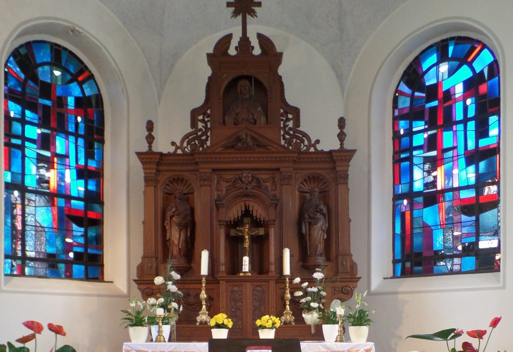 Die beiden Fenster im Chorbereich wurden 1962 ebenfalls von dem Künstler Will Völker geschaffen.