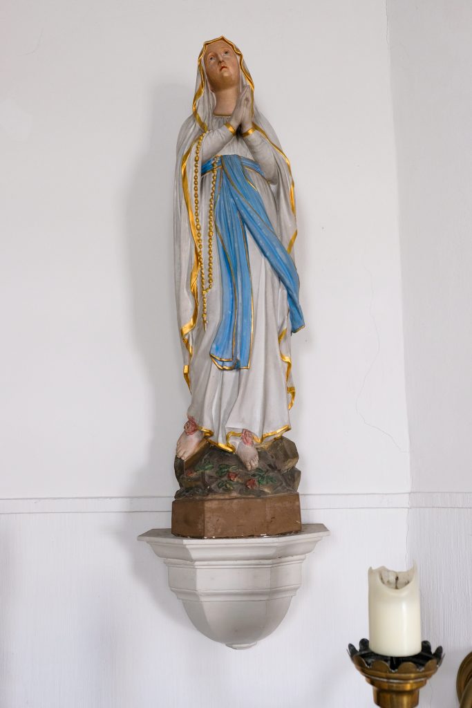 An der Wand rechts neben dem Altar steht noch eine Kopie der Lourdesmadonna, ebenfalls auf einem Sockel.