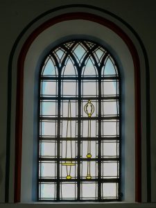 An der dreiseitigen Ostwand steht ein barocker Altar. Er soll aus der Klosterkirche von Haus Hohenbusch stammen.