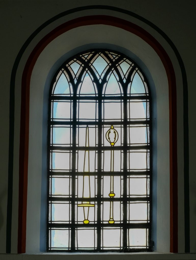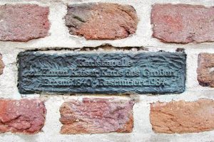 Der Türknauf der Eingangstür erinnert an eine Münze zur Zeit Karls des Großen. Der Knauf wurde von der Künstlerin Elke Lennartz gestaltet.