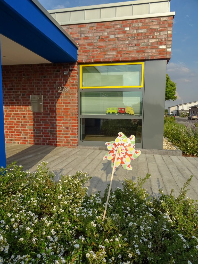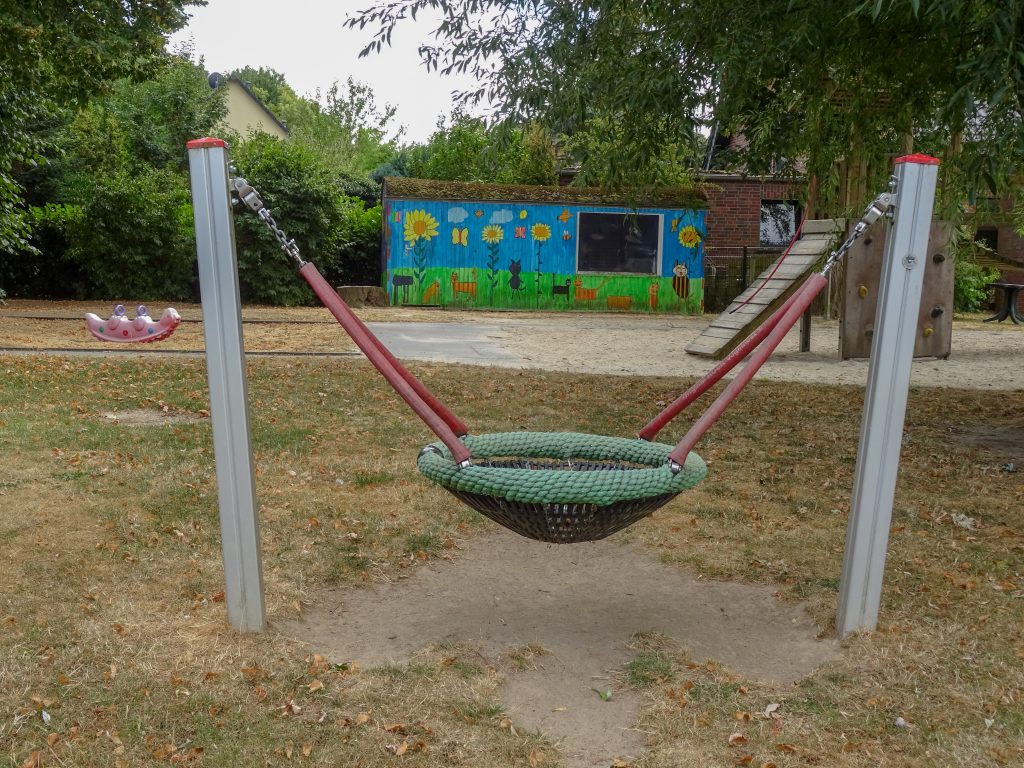 Da sich die Räume für einen Kindergarten jedoch nicht eigneten, wurde kurz nach ihrem Tod (Ende 1959) im Jahr 1962 auf der Obstwiese an der Straße „An der Anlage“, die zu dem Wohnhaus gehörte, ein neuer Kindergarten gebaut. Da sich schnell herausstellte, dass das Gebäude des Kindergartens zu klein wurde und nicht mehr den Anforderungen entsprach, wurde es abgerissen und an dieser Stelle nach den Plänen des Architekturbüros Lennartz, Erkelenz, im Jahr 1987 ein neuer Kindergarten für zwei Gruppen mit Turnraum und Küche errichtet. Dieses Gebäude wurde im Jahr 2012 nochmals um einen Ruheraum und Wickelraum für U 3-Kinder, Küche und Aufenthaltsraum für das Personal, ebenfalls nach den Plänen des Architekturbüros Lennartz, zu einer Kindertagesstätte erweitert.1