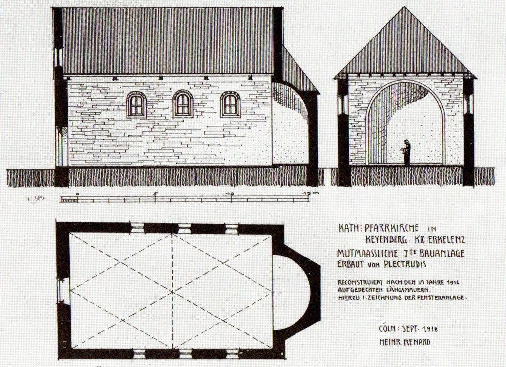 Bewertet man die Erbstreitigkeiten, die mit dem Tode des Ehemannes von Plektrudis, Pippin des Mittleren, 714 begannen3, so ist es in der Tat fraglich, ob so ein unbedeutender Flecken wie Keyenberg für Plektrudis so eine große Bedeutung hatte, dass sie hier eine Kirche gründen ließ. Letztlich fehlen schriftliche Belege, die die Aussagen bestätigen.