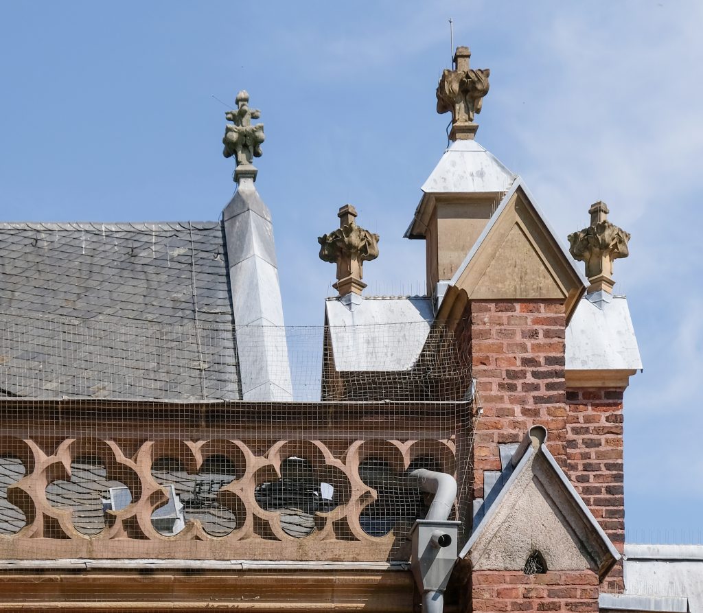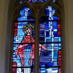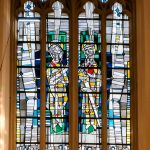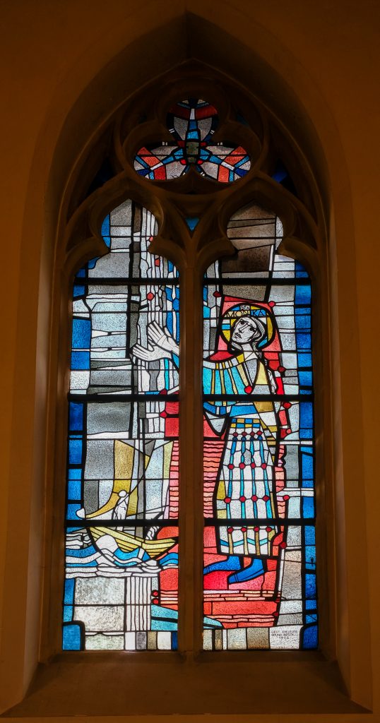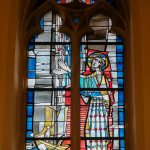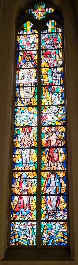 Im Querschiff befinden sich zwei große, dreistäbige Fenster. Sie zeigen Heilige: