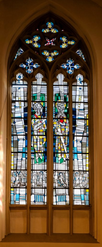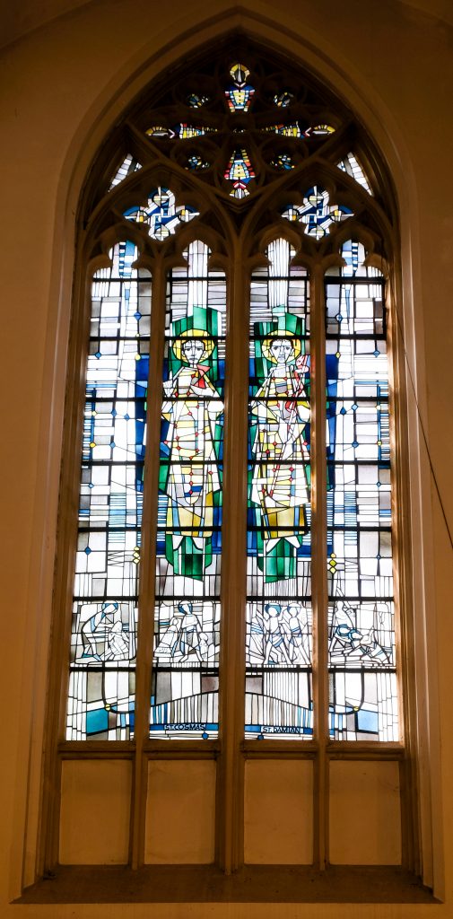 das südliche Fenster die Heiligen Cosmas und Damian.