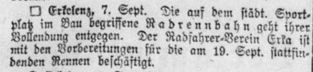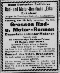 Der Bahnradsport war damals so populär, dass man viele Sportplätze in dieser einfachen Art „aufmöbelte“ um dort Radrennen veranstalten zu können 1.