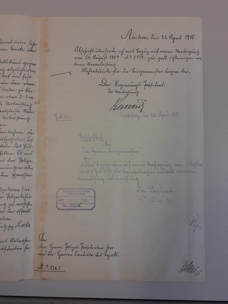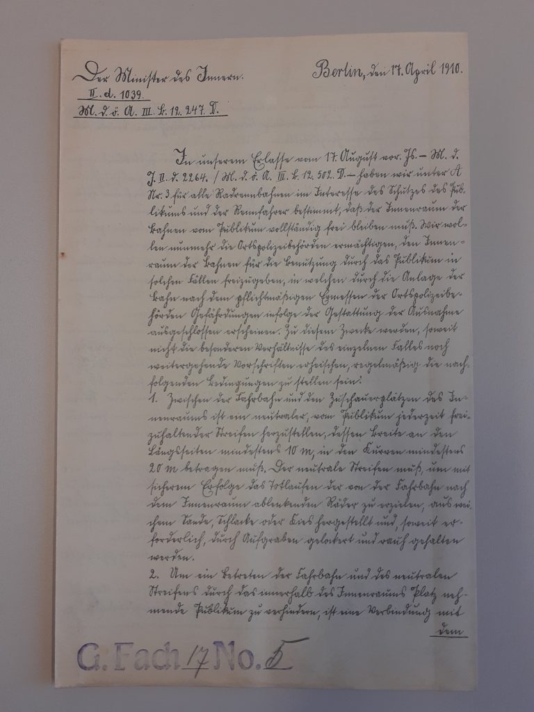 Durch die hohe Zahl an neuen Radrennbahnen wurde zur Sicherheit des Publikums und der Rennteilnehmer ein Erlass des Ministers des Inneren herausgegeben. Berlin am 17. April 1910 5