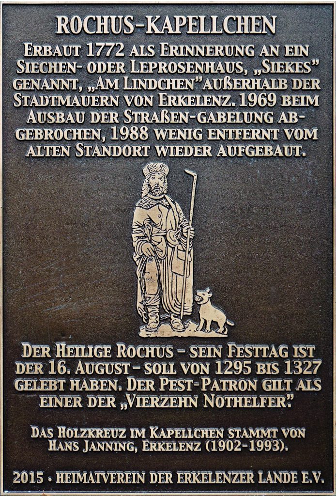 2015 stiftete der Heimatverein der Erkelenzer Lande eine Plakette mit der Historie der Kapelle und des Heiligen Rochus.