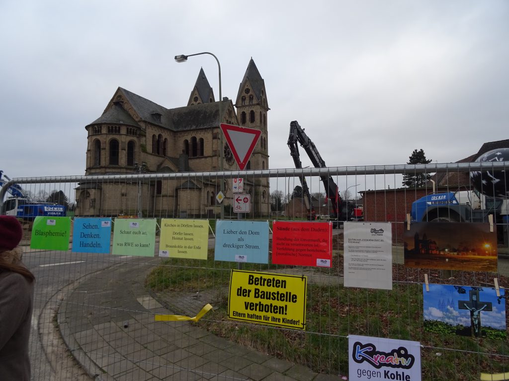 Trotz zahlreicher Proteste und Gerichtsprozesse konnte der drohend heranrückende Braunkohletagebau „Garzweiler II“ in den 1990er Jahren nicht verhindert werden. Am 5. Oktober 2013 fand in Sankt Lambertus die letzte Abendmesse, am 9. Oktober das letzte Erntedankfest statt. Am 13. Oktober wurde die Kirche unter großer Anteilnahme der örtlichen Bevölkerung und der Bewohner der umliegenden Orte durch Domkapitular Rolf-Pater Cremer entwidmet. Die Sankt Sebastianus Bruderschaft brachte das Allerheiligste in die Kirche nach Holzweiler, wo es bis zur Einweihung der neuen Kapelle aufbewahrt wurde.
