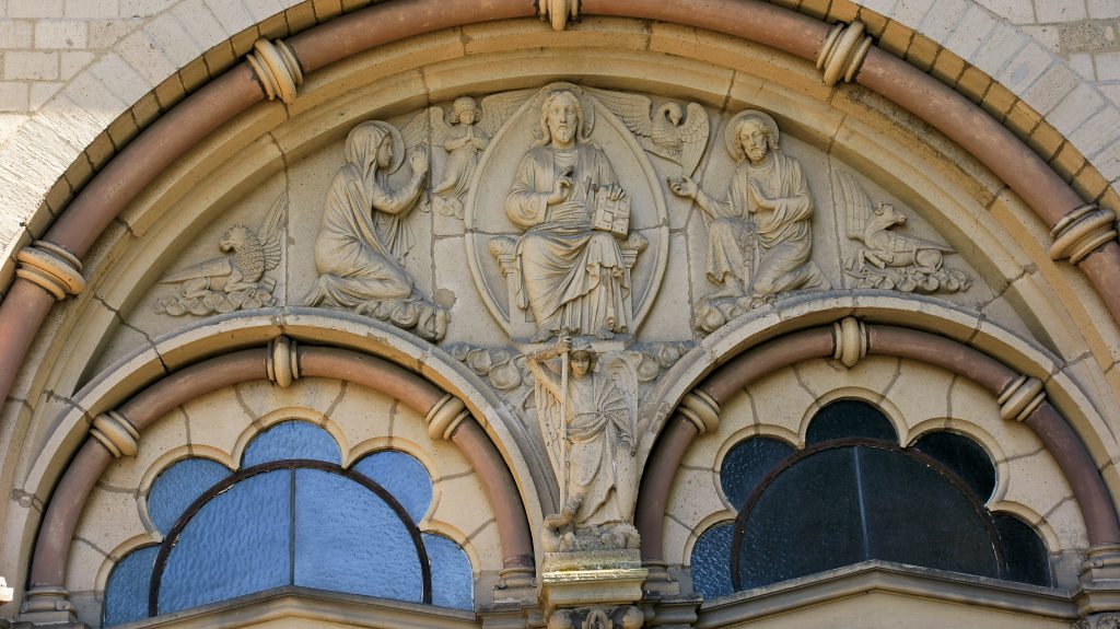Der Boden im Chorbereich und auch das Langhaus wurden mit Mettlacher Kirchenfliesen belegt.