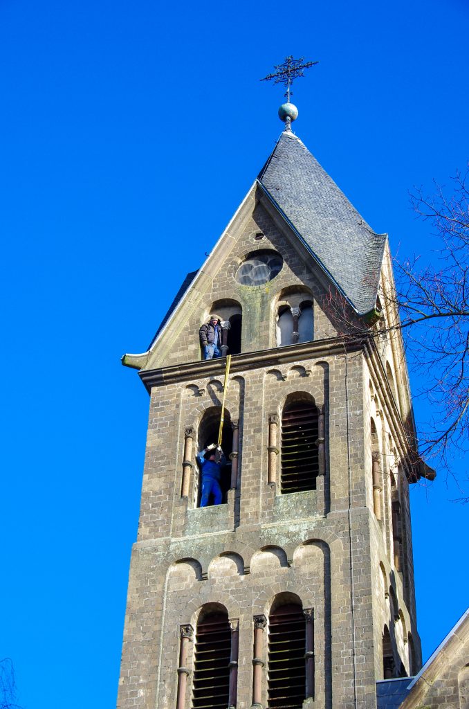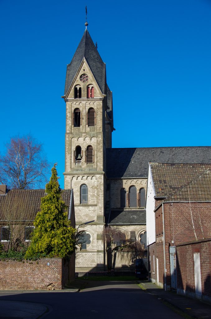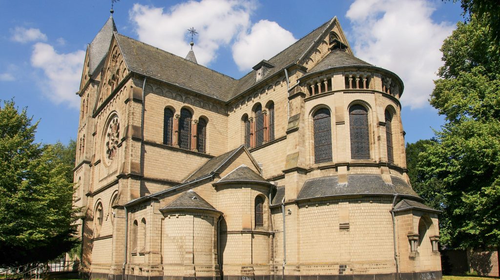 Zu Beginn des 19. Jahrhunderts erschien der Immerather Bevölkerung die alte Kirche der Dorfentwicklung nicht mehr angemessen. Der Ruf nach einer neuen Kirche wurde laut. Vorerst fehlten allerdings die finanziellen Mittel dafür.3 Nachdem finanzielle Mittel vorhanden waren, widersetzte sich der Bürgermeister Hermann Josef Krapoll dem Vorhaben eines Neubaus, obwohl der Pfarrer, Pastor Franz Tillessen, den Neubau guthieß. Erst als Krapolls Sohn Albert das Bürgermeisteramt übernahm, änderte sich die Einstellung zum Bau einer neuen Kirche. Er ließ Lehm für eine Million Feldbrandziegel stechen und verarbeiten. Die Pläne des Kölner Architekten Erasmus Schüller zu einer Kirche im neuromanischen Stil fanden begeisterten Anklang des Kirchenvorstandes. Es musste lediglich der Wunsch nach zwei Türmen nachgearbeitet werden. Am 12. Januar 1887 wurde der Neubau beschlossen. Dank einer großzügigen Spendentätigkeit konnten die Immerather bereits 75.000 Mark der veranschlagten 102.000 Mark Gesamtkosten aufweisen, so dass nach den Baugenehmigungen ab dem 17. April 1888 die alte Kirche abgebrochen werden und am 2. September 1888 die Grundsteinlegung der neuen Kirche erfolgen konnte.4 Hand- und Spanndienste der Immerather Bevölkerung trugen zur weiteren Kostendeckung bei. Drei Jahre dauerten die Bauarbeiten, bis die Kirche am 9. Juli 1891 vom Weihbischof Dr. Anton Fischer konsekriert werden konnte. Abgesehen von den Steinmetz- und Sandsteinarbeiten wurden die Arbeiten weitgehend von einheimischen Handwerkern durchgeführt. Die Verblendung der Ziegelsteinmauern erfolgte durch Weiberner Tuff, der in 60 Eisenbahnwaggons nach Otzenrath geliefert wurde. 5
