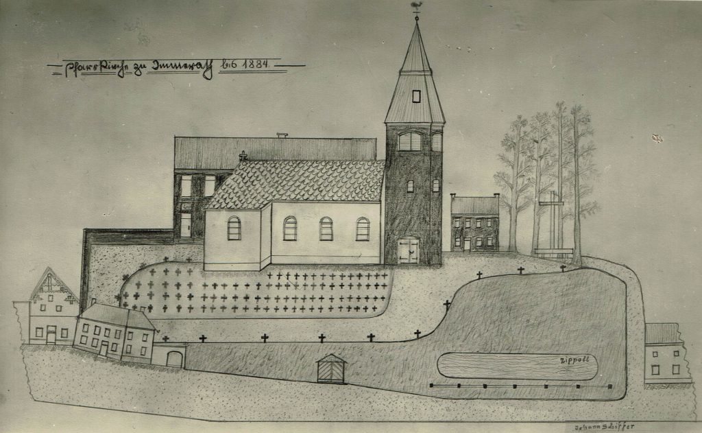 Diese Kirche war aber auch nicht die erste an dieser Stelle. Zuvor gab es schon einen romanischen Bau, dessen Chor mit Steinen aus einer römischen Ansiedlung gemauert war. Diese romanischen Sakralbauten stammten in der Regel aus dem 12. oder 13. Jahrhundert. Vermutlich hat bei der ersten Erwähnung Immeraths 1144 bereits eine Kirche existiert.