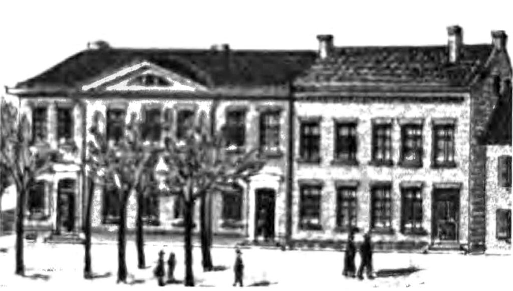 In den Archiven zur Franzosenzeit gibt es einen Hinweis darauf, dass in Holzweiler nach der Auflösung des Dingstuhls 1794 die Schule bis 1820 im ehemaligen Schöffengerichtsgebäude untergebracht war.1 Aus einer preußischen Erhebung zum Schulwesen weiß man, dass seit 1805 ein Lehrer und Küster Baur (auch Bauer geschrieben) die Schule in Holzweiler führte. Wie damals üblich hatte er keine Ausbildung. Er unterrichtete die Kinder bereits mit 18 Jahren und hatte sein Amt von seinem Vater übernommen.2 Immerhin waren 104 Kinder im Jahre 1814 in Holzweiler im schulpflichtigen Alter. Das heißt nicht, dass sie alle zur Schule gingen. In dieser Zeit war üblich, dass nur im Winter die meisten Kinder Unterricht genossen, im Sommer halfen sie auf den Bauernhöfen. Da der Schulbesuch von den Eltern bezahlt werden musste (8 Stüber (etwa 12 Cent) pro Monat und Kind), gingen einige Kinder gar nicht zur Schule.3