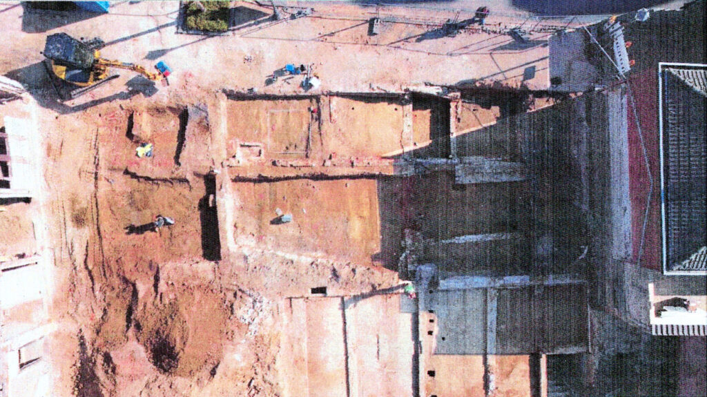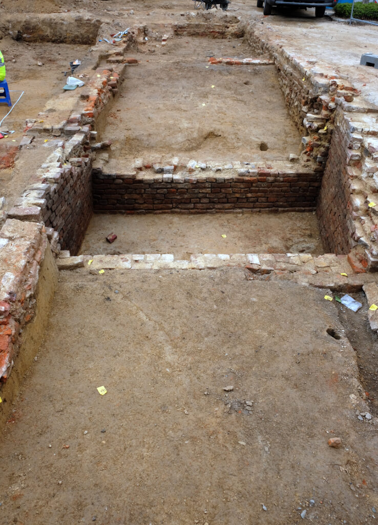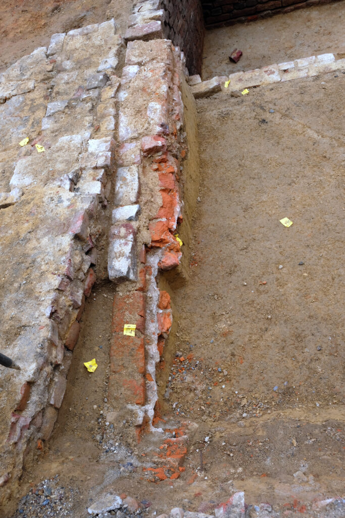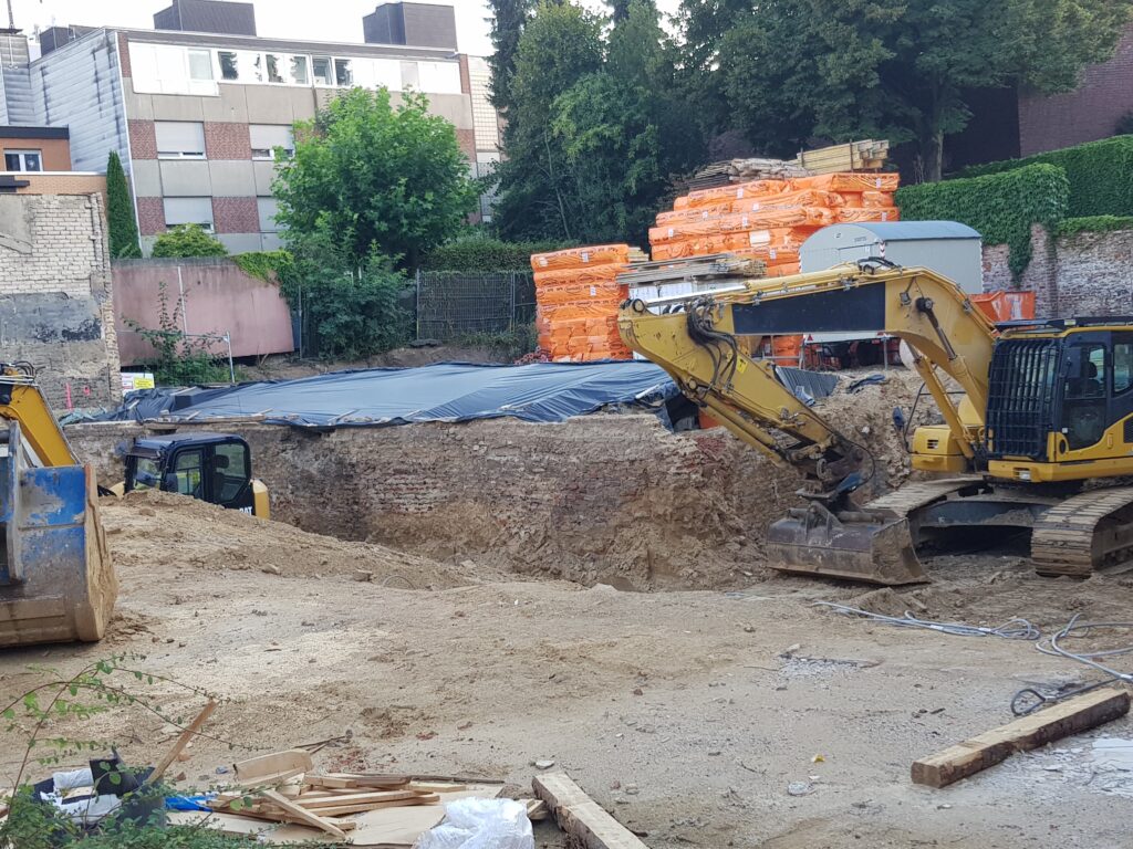 Da das Grundstück im Bereich der Innenstadt lag, die im Mittelalter von einer Stadtmauer umschlossen war, handelt es sich um eine alte Siedlungsfläche. Südlich des Grundstückes verlief die Stadtmauer. Nach dem Abriss der Nebengebäude erfolgte daher eine archäologische Untersuchung. Etliche Mauerreste aus dem Mittelalter, vor allem aber aus der Frühen Neuzeit bis zur Gegenwart, konnten nachgewiesen werden. Als Relikt aus dem 2. Weltkrieg fand sich gar ein zugeschütteter Granattrichter. Über 200 archäologische Befunde wurden ermittelt. Vielfach waren es Reste von Ziegelmauern. Viele Befunde ließen sich nur grob zeitlich einordnen. Zumeist stammten sie aus der späten Neuzeit, einige jedoch aus der Frühen Neuzeit und nur wenige aus dem Mittelalter.