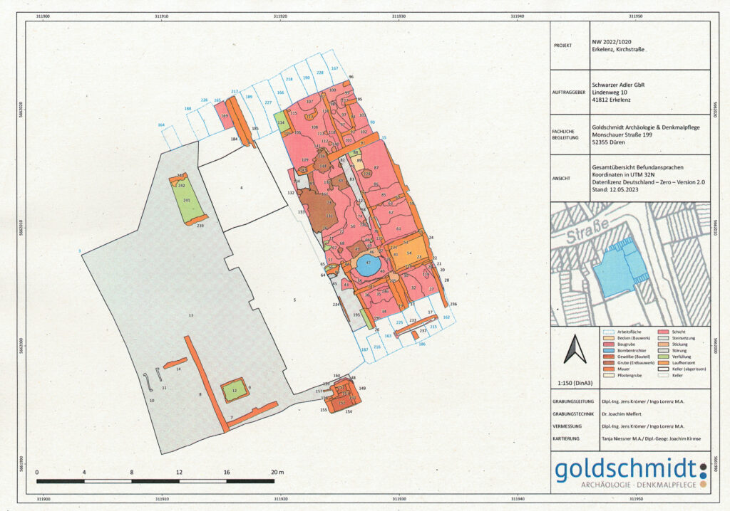 Die meisten Grabungsbereiche wurden bis zu dem vom Menschen noch nicht beeinflussten Sediment freigelegt. Die archäologische Untersuchung belegte insgesamt eine engmaschige Bebauung des Geländes entlang der heutigen Kirchstraße seit der frühen Neuzeit. Einige wenige Befunde waren mittelalterlich.